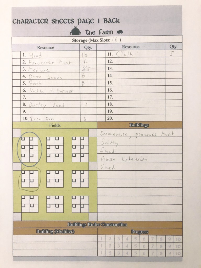 We’re a bit low in almost everything, but we’ve got everything we need to begin construction on the Karve. We also have some seeds for Planting Crops, so we don’t have to worry about buying more seeds right now. The question is, will we be able to get enough Supporters somehow to fill a Karve? We’ve got time before the Summer Raids. But then we’ve also got to feed people, and we eat a lot every Month now. Tough decisions ahead!