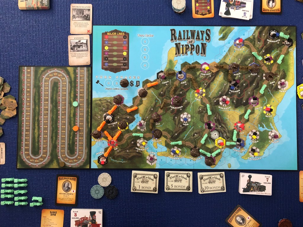 I’m behind again on posts, in large part due to Final Fantasy XIV. But let’s talk board games! We’ve recently had to go back into partial lockdown while waiting for boosters for the more vulnerable people in our house, but prior to that, we played Railways of Nippon (a stand-alone release in the Railways of the World series) and Tokaido with the Crossroads Expansion.