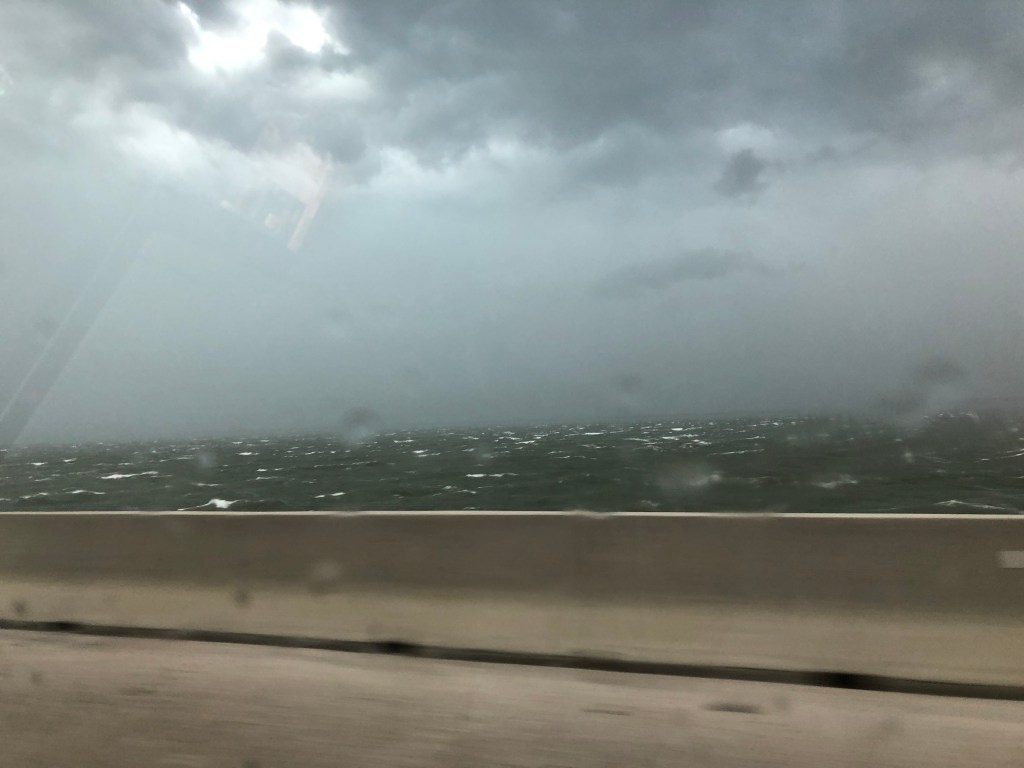 The ride home after was an adventure in itself. A big storm came through and flooded some of the streets we normally take. Nice view from the bridge though.