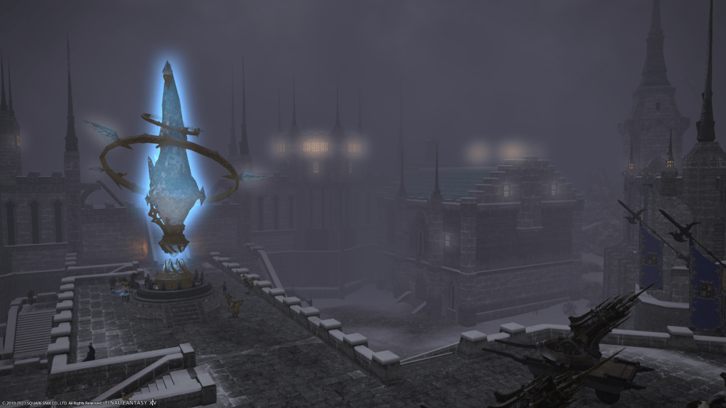 A popular hangout area in Limsa Lominsa. This is a small crowd compared to peak hours.
