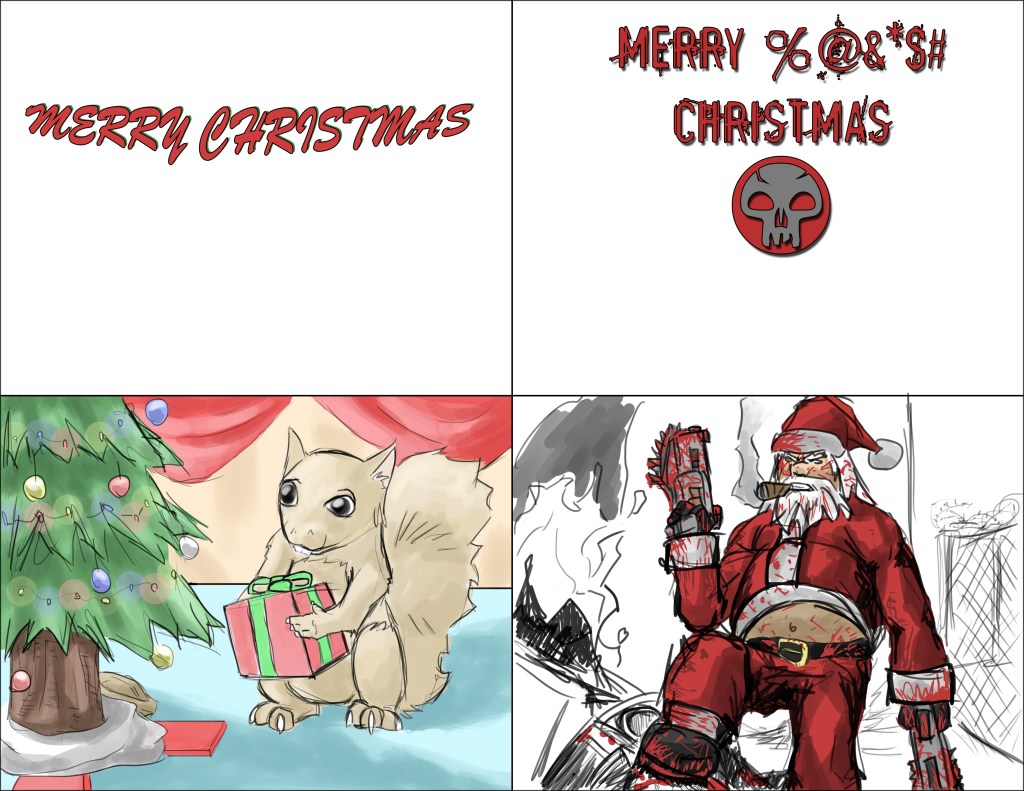 It’s been a weird year. The website has continued to grow, Winds of the North development has been fun and productive, and my writing has improved. I hope everyone else has had a good year. Enjoy some free Christmas cards, ones I drew for my family years ago (the Gears of War card indicating just how old these are).