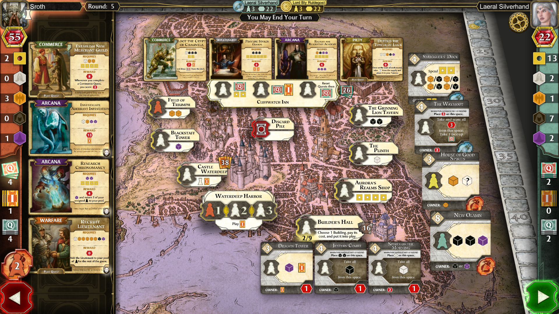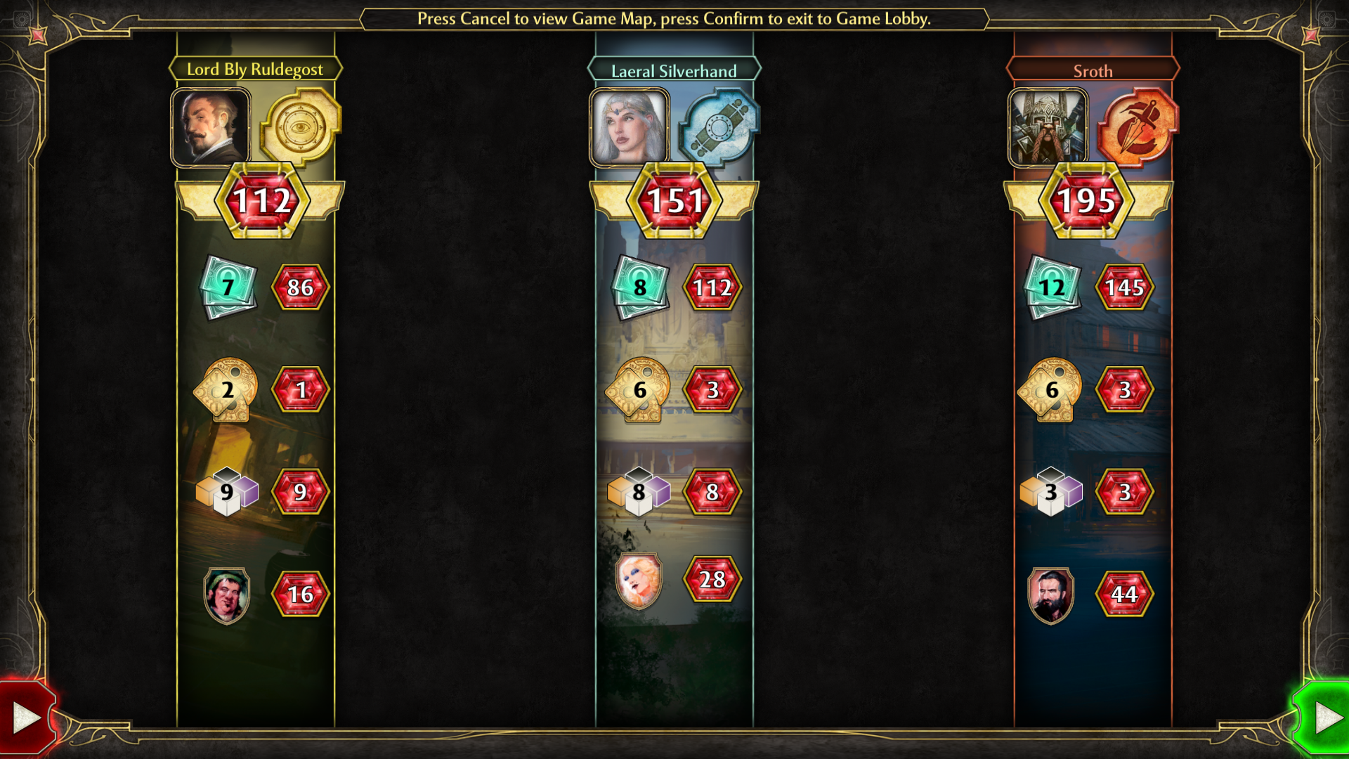 This is the first game in this roundup that I’ve not played in person. I’ve known of it, of course, but I’ve preferred other games in its specific sub-genre of mission-oriented worker-placement. Specifically, Yedo and Champions of Midgard. But the app looked good (it’s by PlayDek, afterall—a well-established developer of board game apps), was well-reviewed, and was pretty cheap on discount for $5. Also, neither of those other two have an app. I had to learn LoW from the app since I had never played before, and the tutorial is excellent, split into multiple parts to teach each aspect of the game through playing. At the end, you’re free to complete the tutorial match on your own (a particular tutorial style I really appreciate).