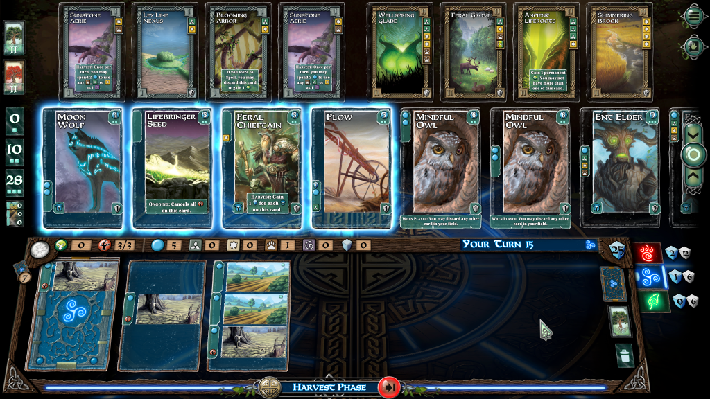 The UI is clean and easy to read, and I appreciate the full cards, which are actually larger than the real game because these are displayed as full art until added to a card (something you can’t do with the physical cards). I do wish there was a way to display your Field and your special cards at the same time. It’s easy to forget you have an ability to activate when it’s off-screen, despite the glow on the side, indicating you have an ability you can activate. There is also no full explanation of complex cards during the game. You have to go find them in your collection in the main menu to get the full rules for each card. Once you familiarize yourself with the cards, it’s fine, but it does make the learning curve steeper than it needs to be. Though most cards are very straightforward anyway, an option to turn on detailed tooltips would have been nice to have.