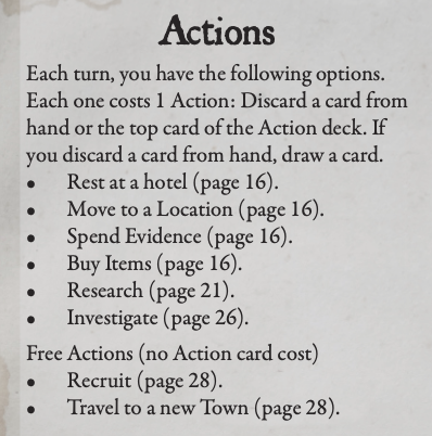 Your Actions drive the gameplay. There are several Actions to take, but most cost you time.