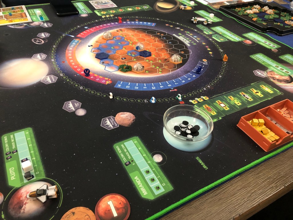 We’ve played this several times, and we’ve found our preferred mix of expansions (Prelude and Colonies, not Turmoil). We tried out Elysium this time.