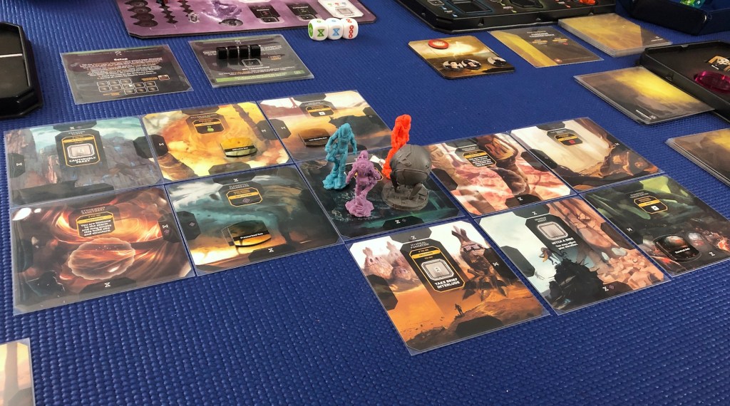 It’s an odd game. And I still don’t like the attempt at humor (it feels like half-hearted irreverent-style humor), it clashes with the hard sci-fi aesthetic. But the mechanics are solid. And I like how the game handles the coop nature of it. You’re not just flipping over a card each turn to see what bad thing happens and running around putting out “fires” all game like most coops (not that it’s a bad thing, but it makes most coops feel very similar). In Unsettled, the game does things as a reaction to the players. And instead of putting out “fires”, you’re solving a puzzle. And like Vindication, once you get the hang of it, it’s a quick game compared to most “explore and uncover story” games.