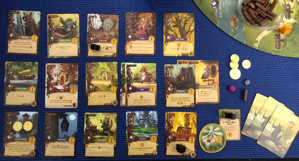 We all enjoyed this one. It’s very interesting how you feel like you get nothing done in round 1, but by the end of the game, your town is filled up and you’re running out of things to do with resources. Searching for combo cards can be a little frustrating at times, but when things click, it’s very satisfying. Since my friend has everything, we can explore the expansions at our own pace.