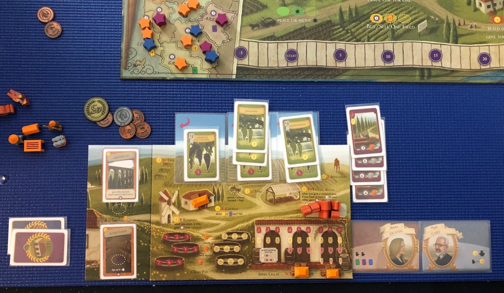 Tuscany definitely improves the game. We also played with specialists and structures which were both interesting. Actually, of all the things we’ve played with in Viticulture, the Tuscany influence map is the one disappointing addition, but it’s not a module you can “turn off.” We might use the optional rules to remove the points for the map.