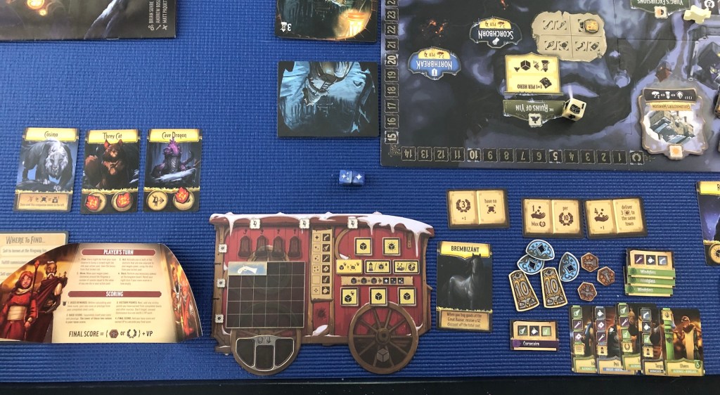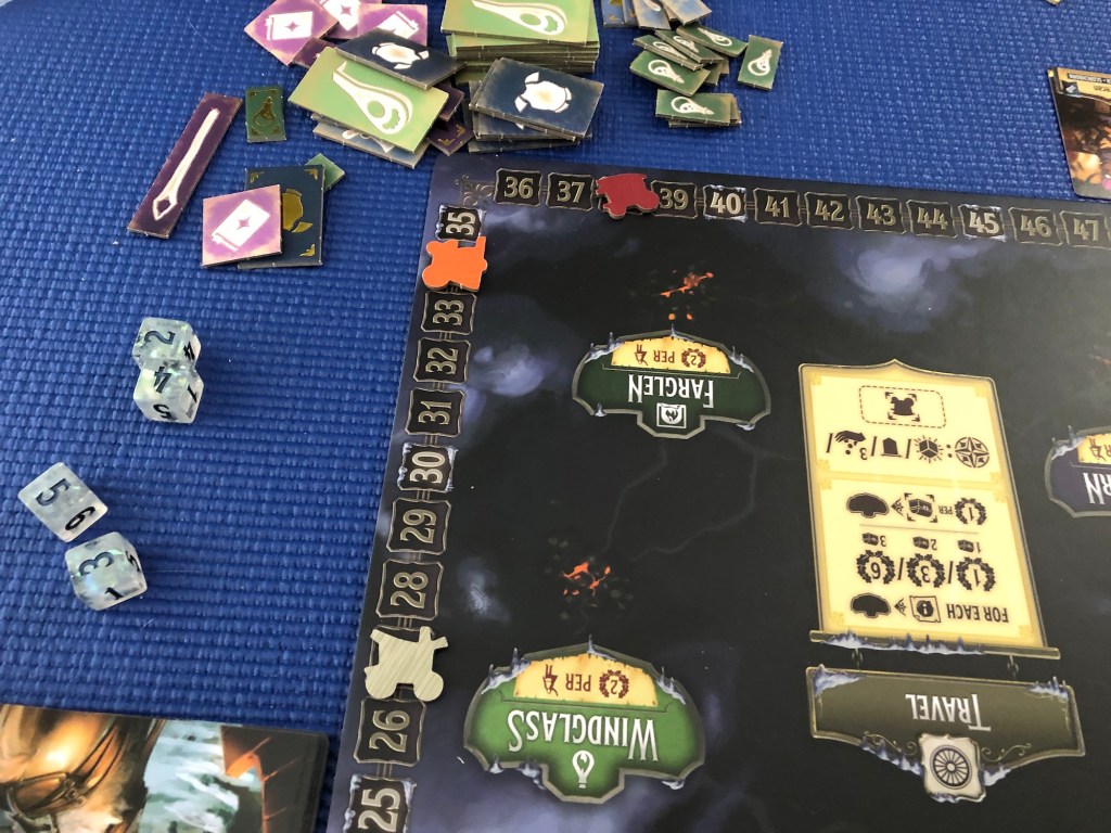 We were close to Halloween, so I wanted something with a spooky atmosphere (we don’t really have much in the way of spooky horror-themed games, certainly not ones my friend would be interested in). MotDR isn’t a horror setting, but it has a dark and spooky atmosphere. I was also interested in getting it out again to see how my thoughts may have changed.
