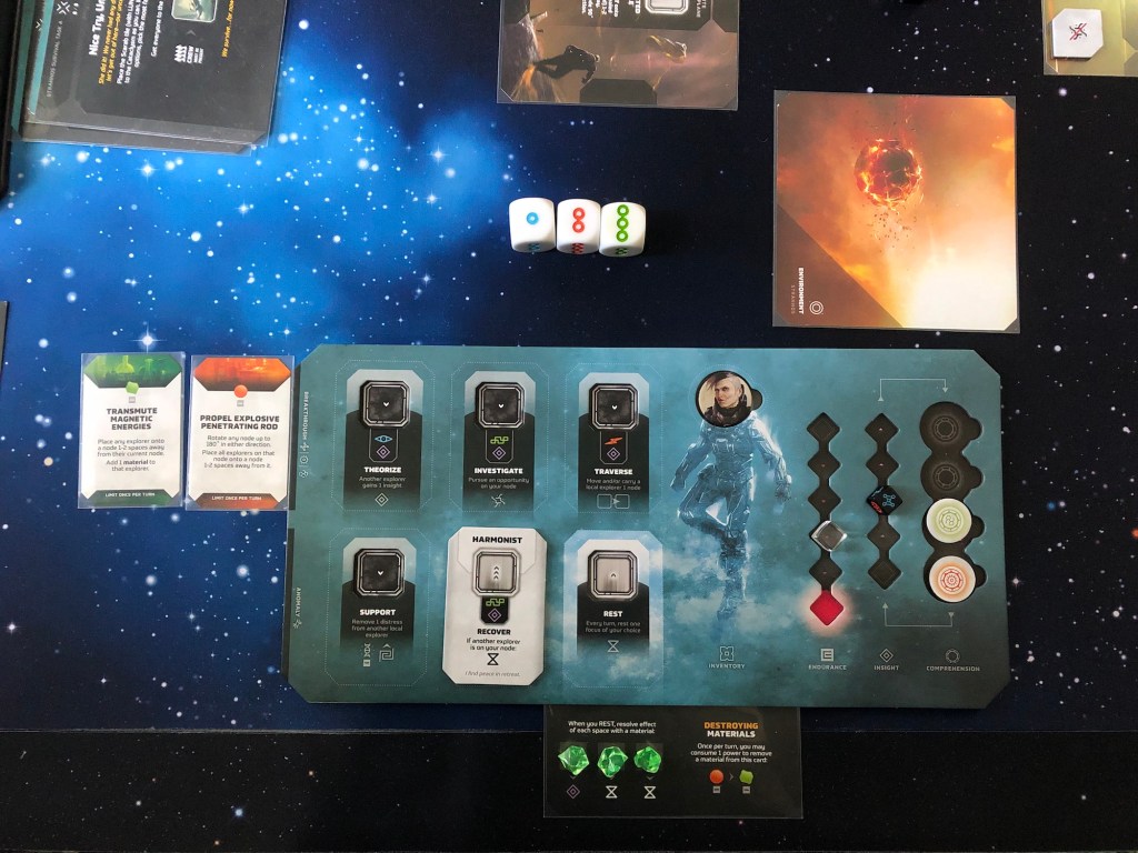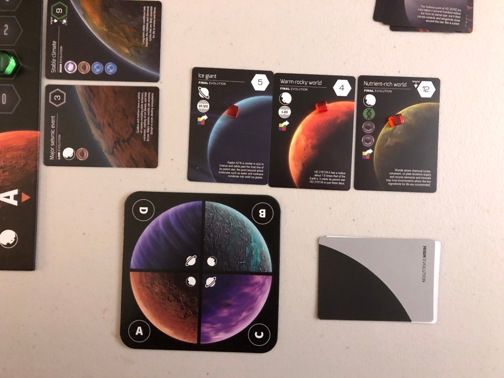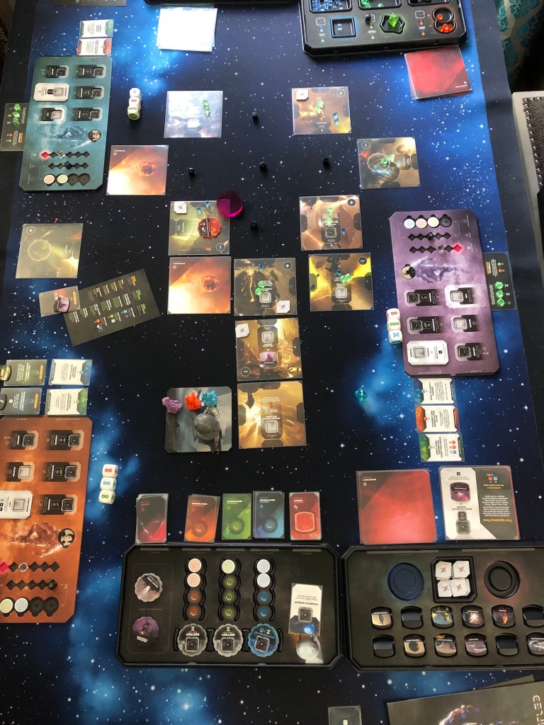We tried out another “planet,” though this one had us stranded in space with asteroids. Lots of funky movement and puzzling out the board. Still a fun puzzle. Still kind of annoying writing. It’s weird, though—for a really successful Kickstarter (over $2-million), this game seems to have gotten overlooked. Almost no one talks about it. Not sure what happened.