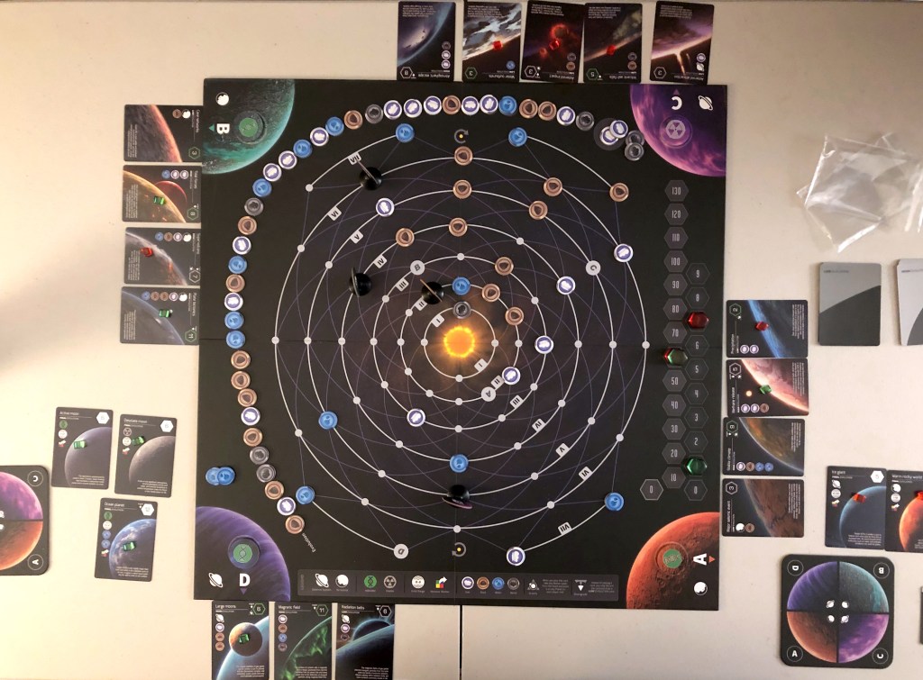 Other than appearing on the Dice Tower’s best covers video, I don’t think hardly anyone knows about this game. But my friend loves space-themed games, so he has a copy with the expansion. My brother also likes space games, so we borrowed it to try out.