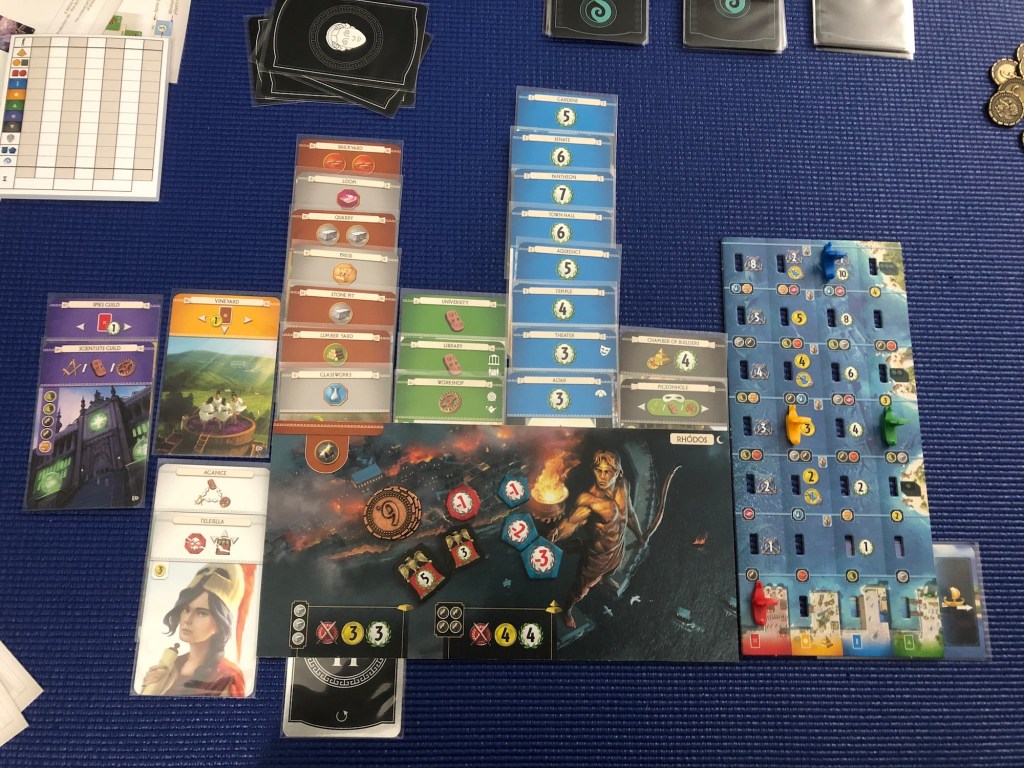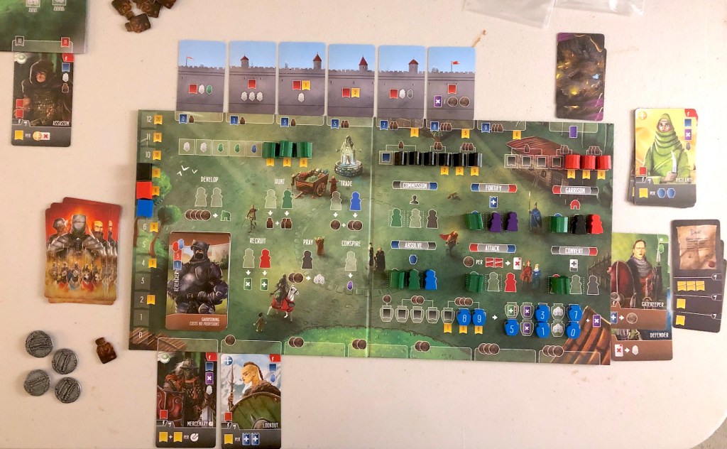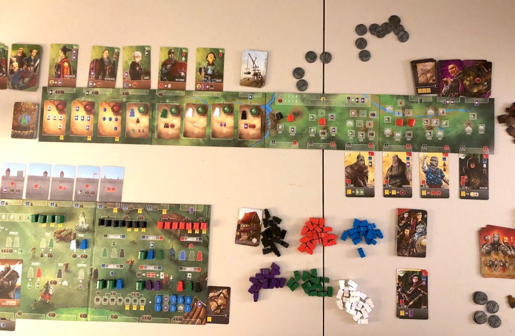 We borrowed our friend’s copy to play 2-player with both expansions (the only way to play, really). I had forgotten how good the game is with the expansions. It honestly feels like a different game. I’ve been tempted several times to get Raiders of Scythia which has all the best parts of this one packed into the base game. We also borrowed my friend’s playmat for the game, but it’s slightly larger than the boards and doesn’t fit on our table.