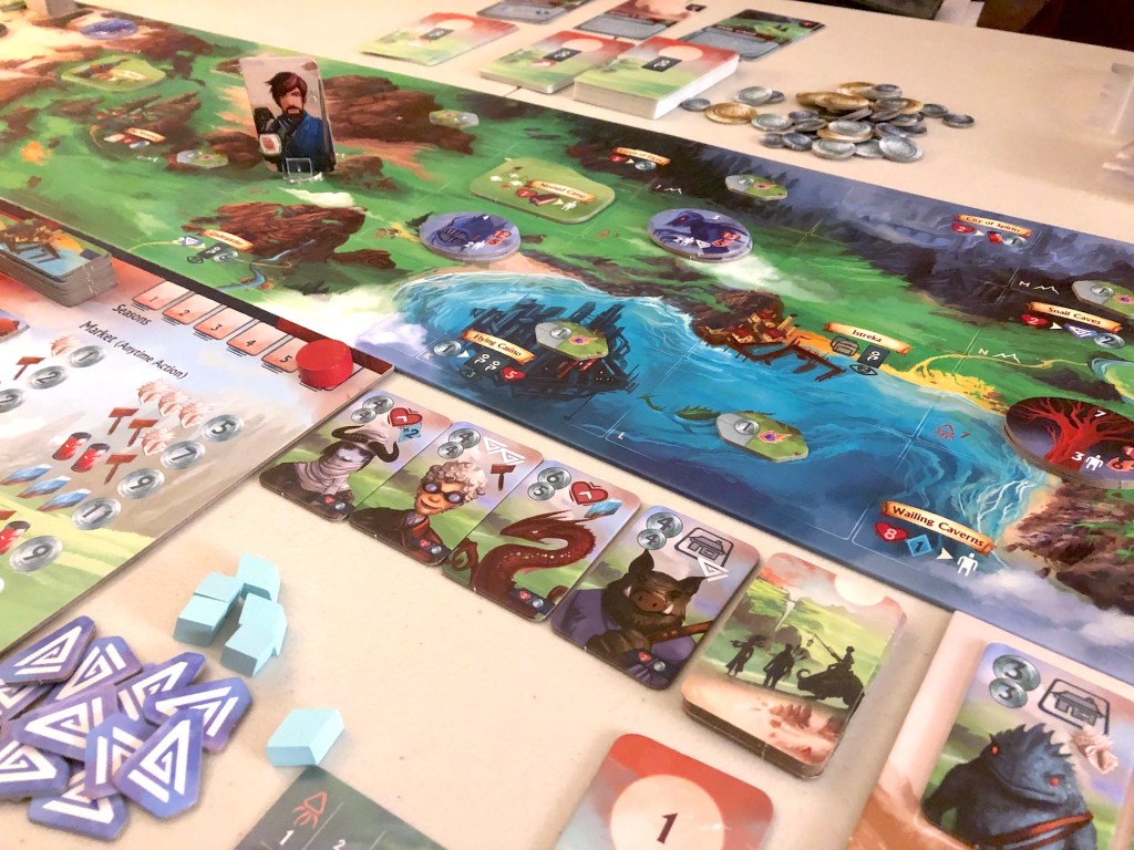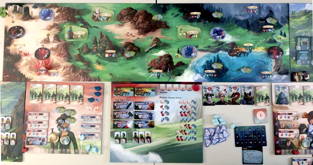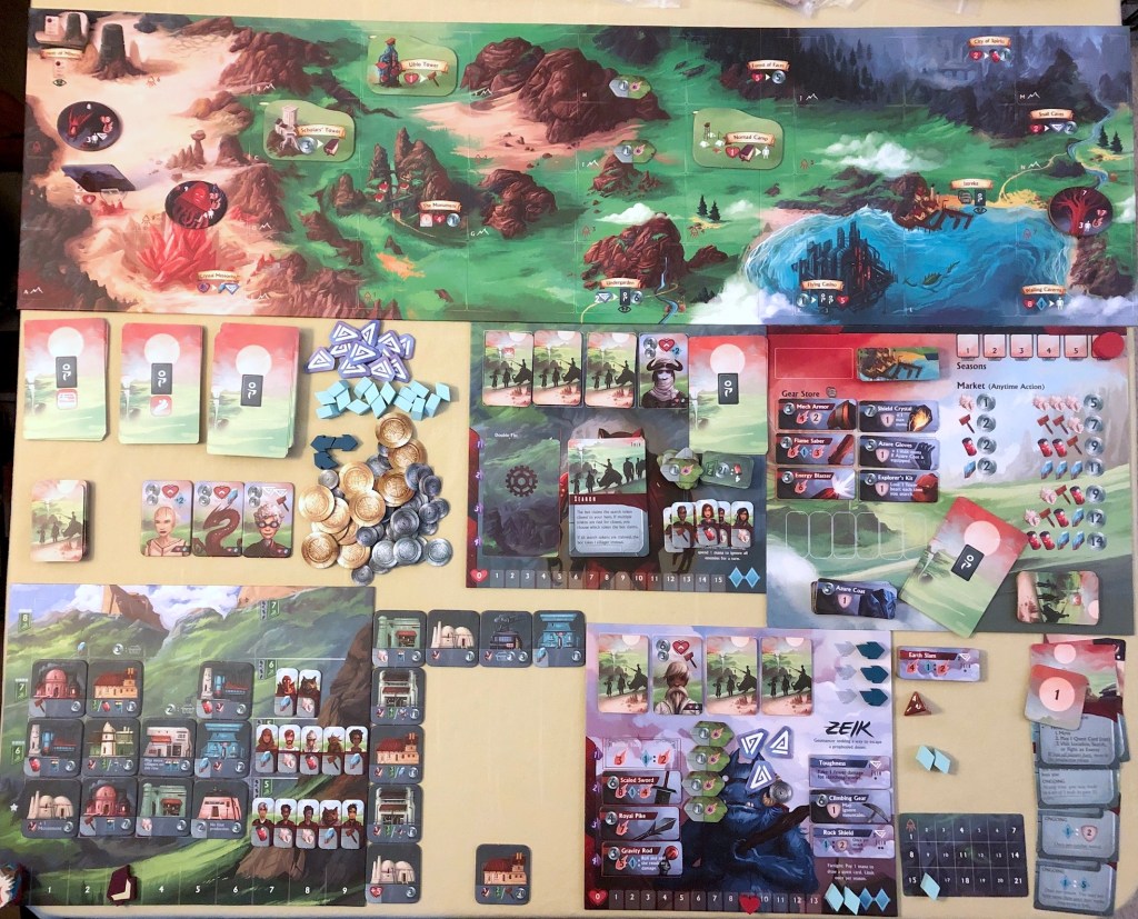 We enjoyed Near and Far, but my brother and I liked this one a little more. It’s still pretty long, but there’s a lot more to the game. The resources are weird with no theming. The rules for the building grid are weird and make no sense. But the exploration and combat are really fun. There are tons of ways to customize your character and party. The writing could still be better. It’s okay, but not much better than Near and Far. The campaign doesn’t look quite as interesting though. And I think if this gave players more stuff at the start, they could have shaved off a couple of rounds and cut down on the overall length. It definitely could have been fewer rounds.