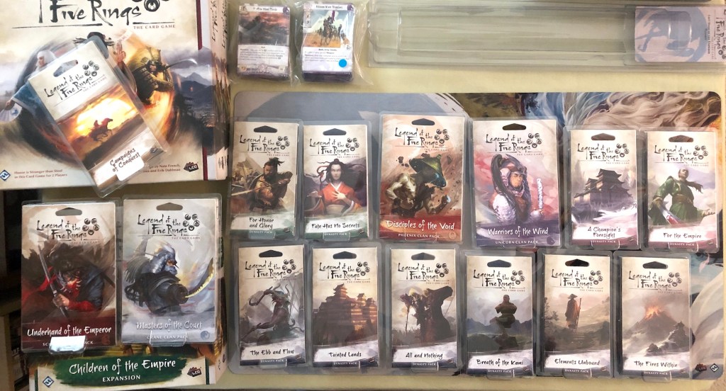 I’ve been enjoying the game a lot, but we both agree that it’s a high learning curve. Not only are the rules complex, but the cards can be really difficult to understand sometimes. FFG seemed to have this idea that a competitive game should target only the most hardcore players. This might be why all of their competitive LCGs are dead. A couple had decent life spans, but no evergreens, and L5R had a pretty short run. Though, the LCG model really was not a good fit for the game. At least most of it is cheap for me to come into now. At some point, I’ll probably also buy some of the old CCG since there are tons of that floating around for cheap as well.