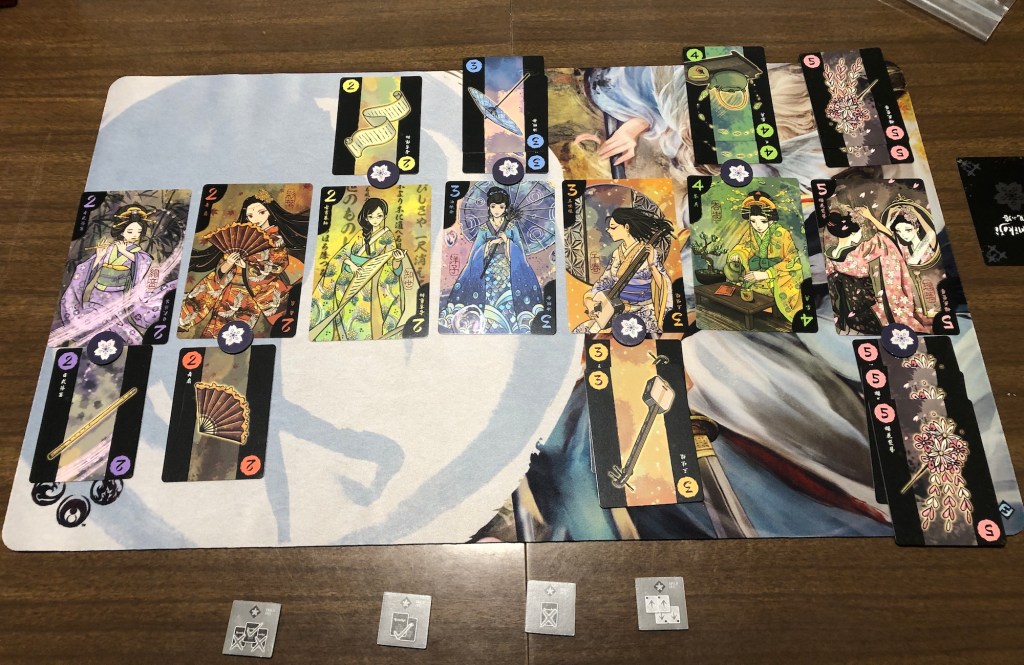 After L5R, we brought out another Japanese-themed 2-player game. We’ve played this one a handful of times, and the new version had come in with a bunch of new action tiles, so we played that one and tried out some of the new tiles. I think we played 1-3 of the new ones.