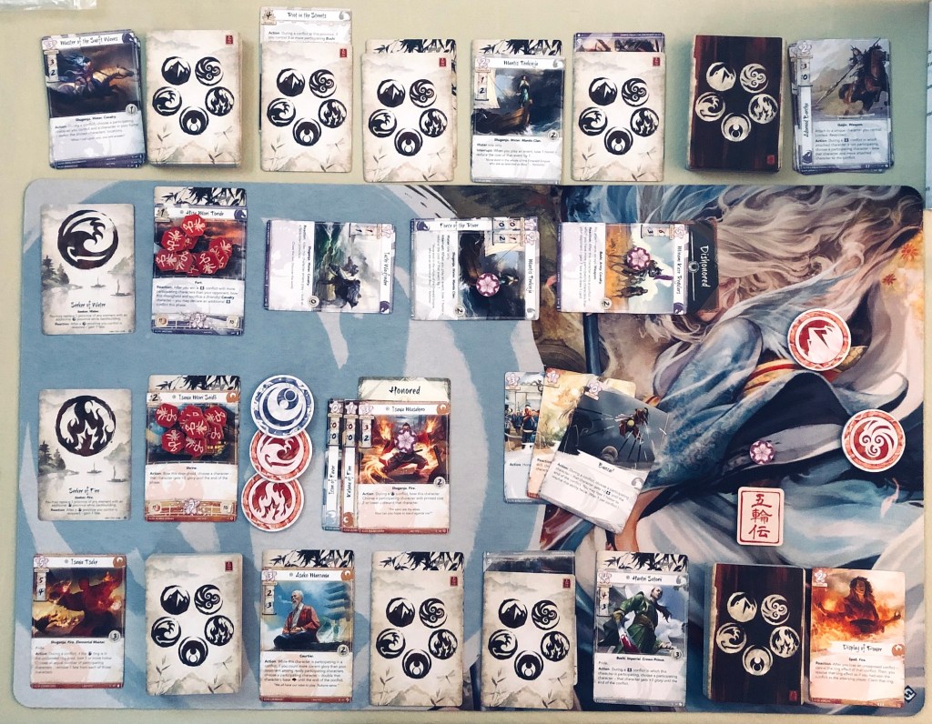 Since we can’t always keep doing 2-player days, we settled on playing online. There are a couple of ways to play L5R but the simplest for us was Tabletop Simulator. So found a good mod and remade the same decks.