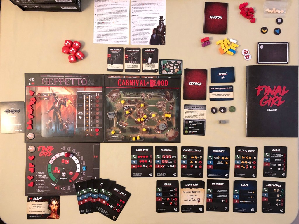 I was always on the fence with Final Girl. The idea sounds fun, but the very tongue-in-cheek horror movie references aren’t my thing. My friend, for some reason, decided to buy all of series 1 and 2. He played it some and wasn’t entirely sure about it either, and wanted me to try it too (and I was interested).