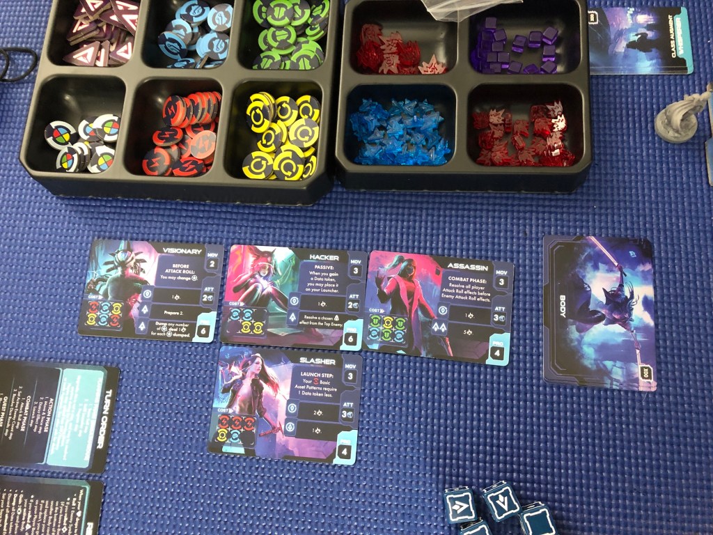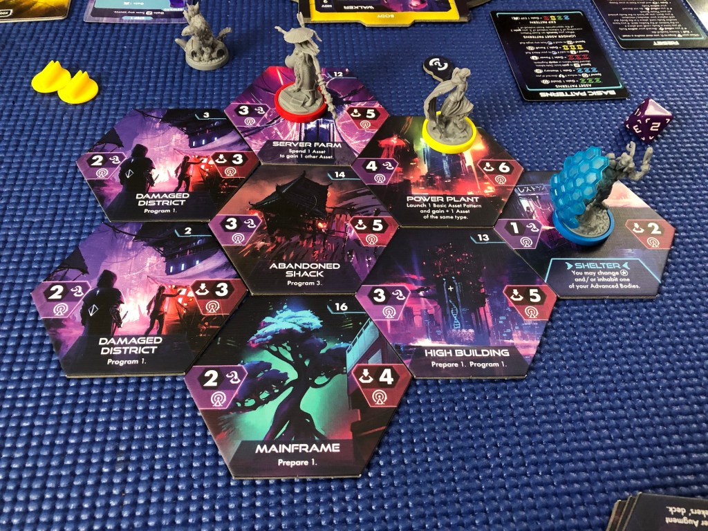 All of us in our game group have been interested in Awaken Realms’ games, but we hadn’t actually played one yet. But my brother decided to get Tamashii since it was a cyberpunk game and supposedly not as large and complicated as their normal games (it was made by a different development team, from what I understand).
