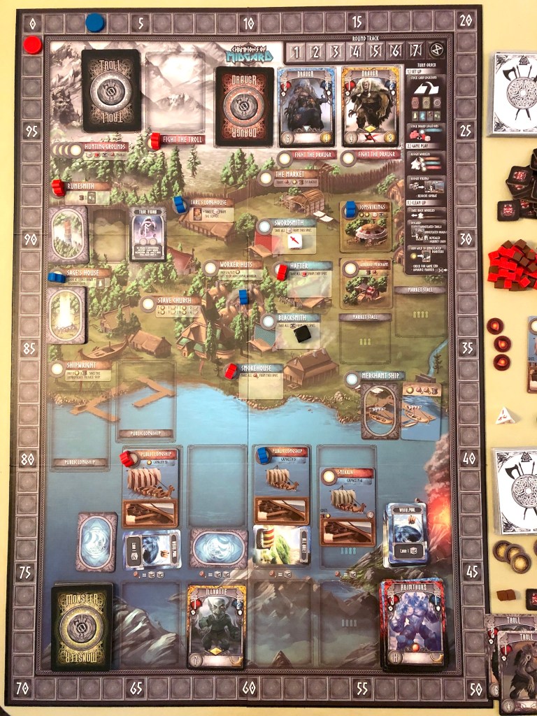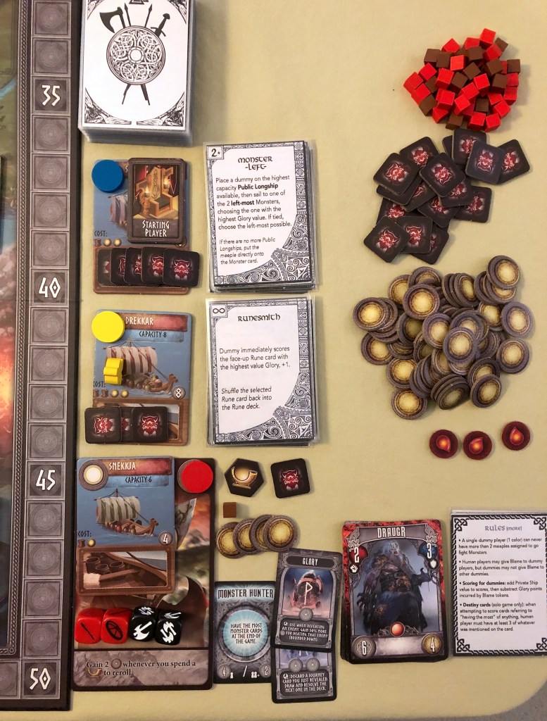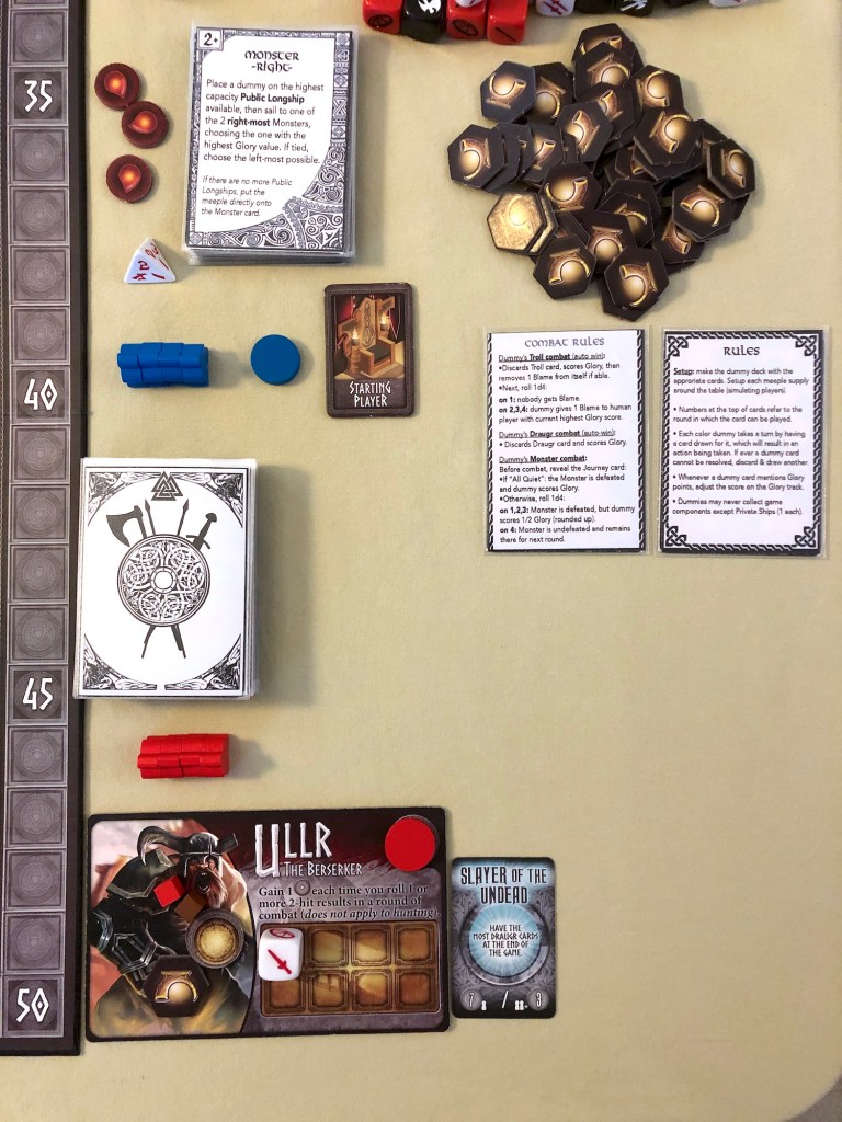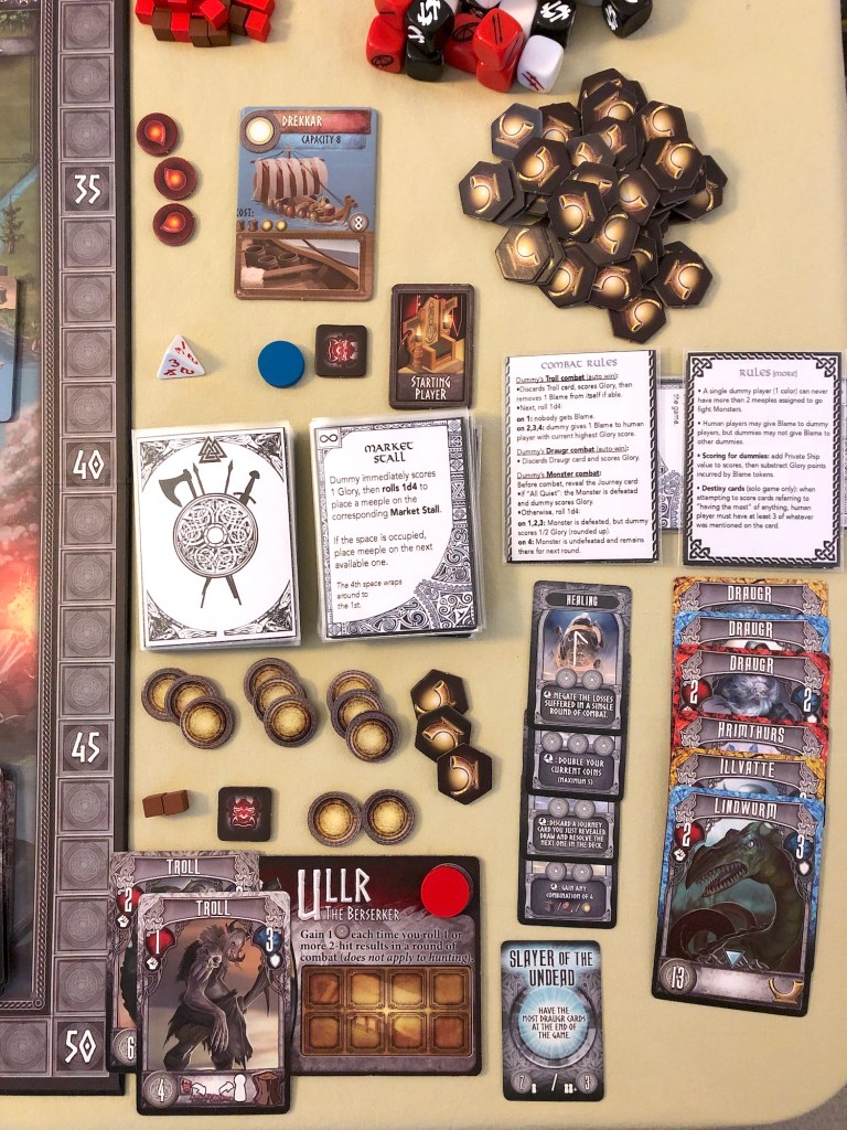 Played it 3-player. In the base game, luck can certainly be a huge factor if you get really lucky or unlucky. I had a couple battles that defied the odds and wrecked me. There was also an unusual amount of competition for the trolls so I wasn’t able to score the full amount of my Destiny card. It’s a really fun game but it’s easy to see how the Valhalla expansion kind of “fixes” the game. I’d still happily play the base game, though.