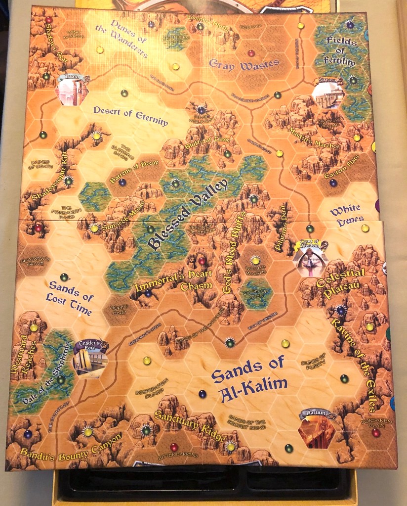 Back in the day, I tried getting some of the expansions, but I really didn’t have the means to obtain much. Frozen Wastes was the first one I got, then Mists of Zanaga. Much later, I bought a copy of Island of Dread. There were only 2 big box expansions missing: Midnight (which was a weird, 1-vs.-all expansion that took place in FFG’s Midnight setting instead of Terrinoth) and Sands of Al-Kalim. Even back then, Midnight was well out of print and going for $100-200. But when it came to Sands, I just never quite had the money for it when I went looking for a copy. Foolishly, I let other things take priority.