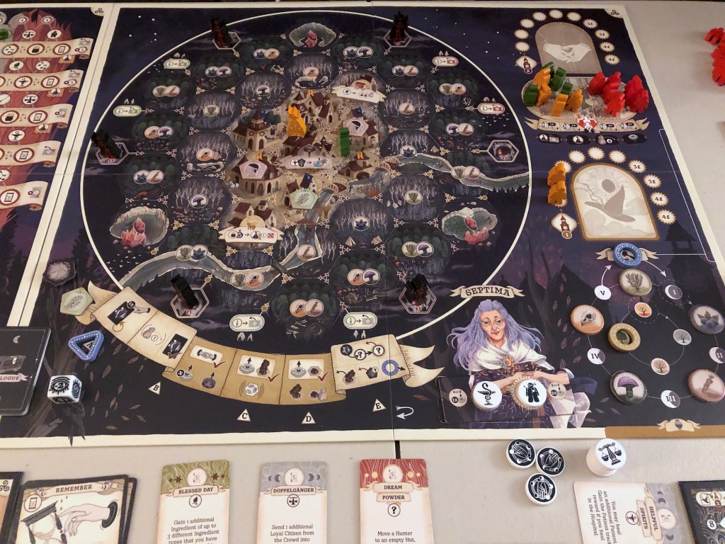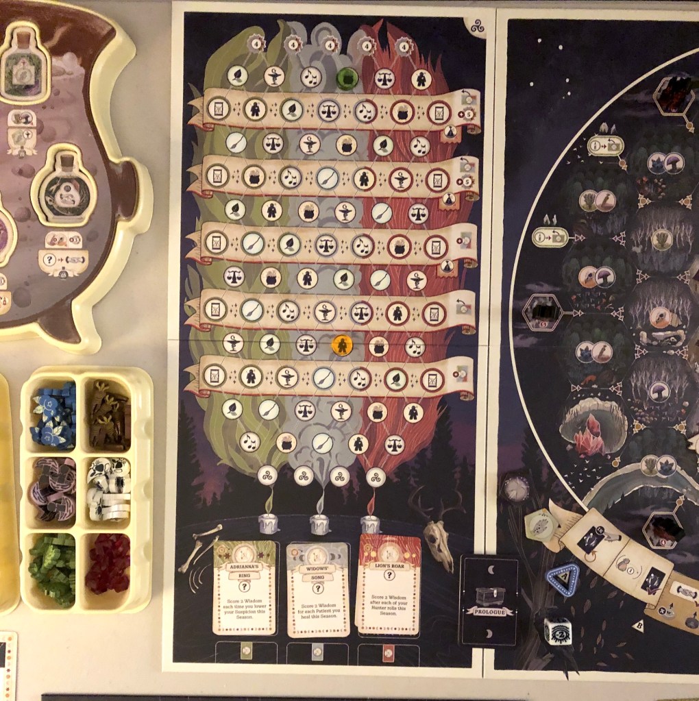 I still enjoy it, even the basic version, but the problems still persist. It was especially noticeable this time when it was very difficult for us to get witches (still only 4 trials at 3-player), and none of us were able to score all 4 divination objectives. As a result, most of the scoring was a wash or with one person scoring 1-2 points ahead of others. There was primarily only one scoring area (patients) where one player scored a significant amount more than the others. That doesn’t really feel like good design. That might be more of a problem with the basic version, though, since the advanced rules have other ways to score.