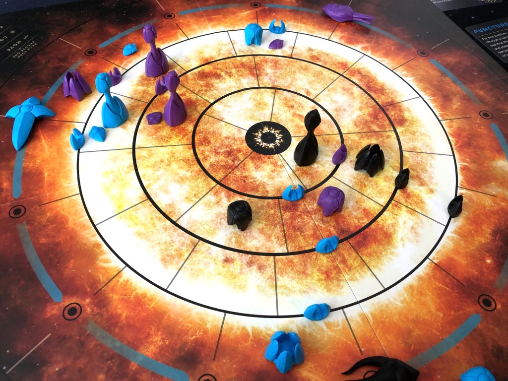 Speaking of a theme that doesn’t do much for me. Sol is about building stations around a sun to collect energy so you can escape before it explodes. It’s a bit of an odd Euro that’s fairly straightforward. There aren’t that many options for what to do on your turn. Build ships, move them into position, cash in ships for structures that do a few different things.