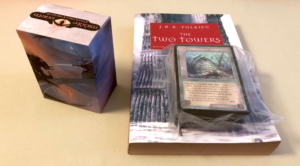 After getting into BattleTech, a dead CCG, I decided to check in on Middle-earth CCG. I had tried maybe a few years ago, but there was little available, and what was out there was expensive. I was quite sad to not be able to get any since it seemed like a Holy Grail game for me. Lately, prices have come back down, so I decided now was the time to jump in!