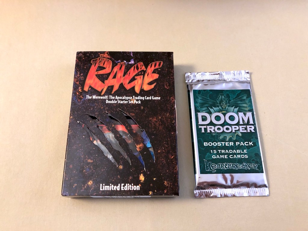 After buying a bunch more MECCG, I also saw a good deal on a 2-player Rage starter deck. I had never seen the 2-player starter, so I figured I’d buy one just for fun. Since the old starters were random anyway, I might get some cards not already in my collection. Turns out I got 3 new ones (and a bonus Doom Troopers booster pack they sent me)!