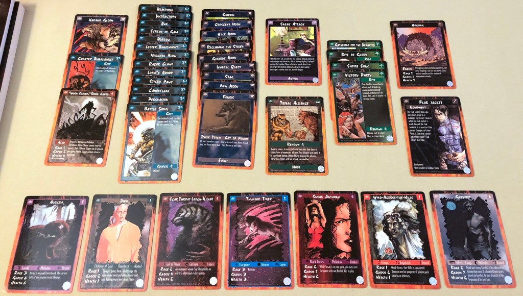 Just to get a feel for the game again, I played a game while trying out some very basic solo rules. It’s still very much a work in progress, but it got the job done, helping me learn the game in preparation for our actual 2-player game. It was somewhat close, with my deck running low when I won, so it kind of works. Though I’m sure a real deck would make it much easier.