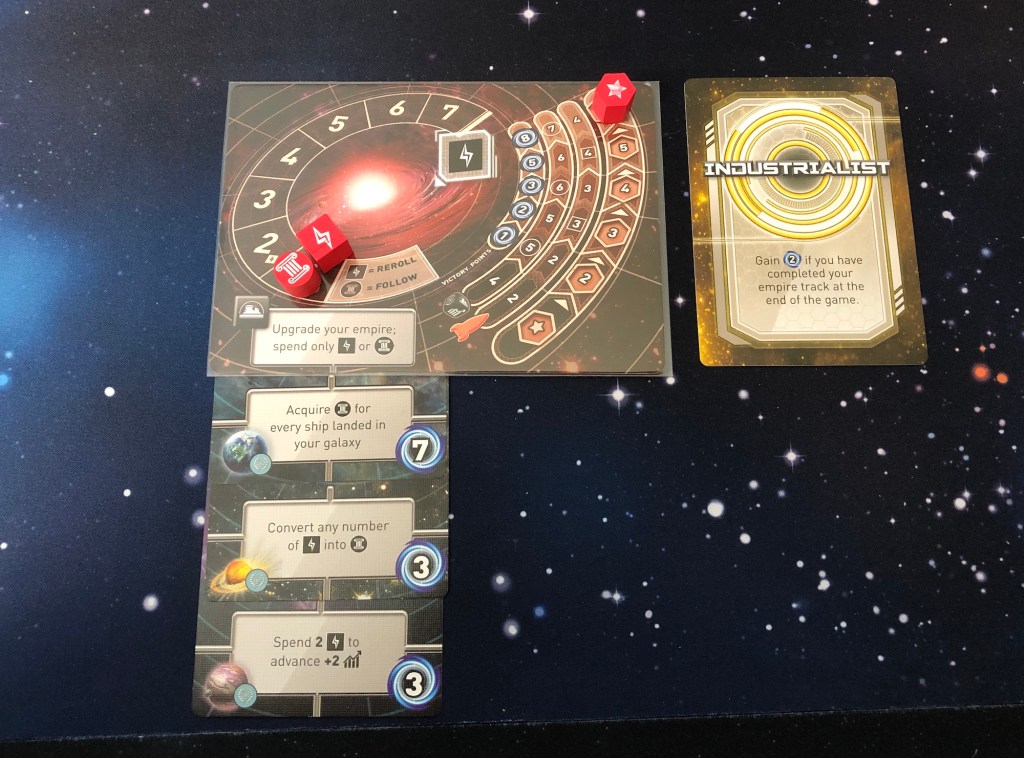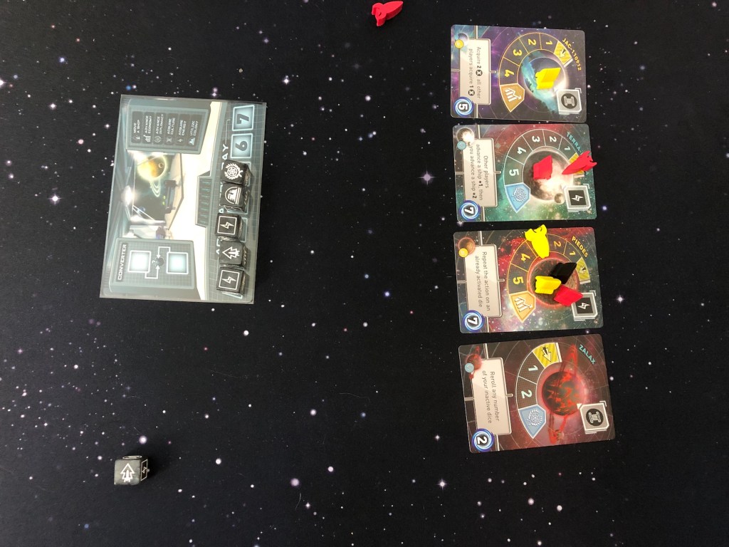 Since we hadn’t played many times and it had been a while, I opted to just play the base game. Some of the races have higher learning curves than others, so they seem unbalanced if you’re still getting the hang of the game. This time, it seemed that all of us had a better grasp of the game and were building up more than in previous games. It was pretty satisfying filling up my board!