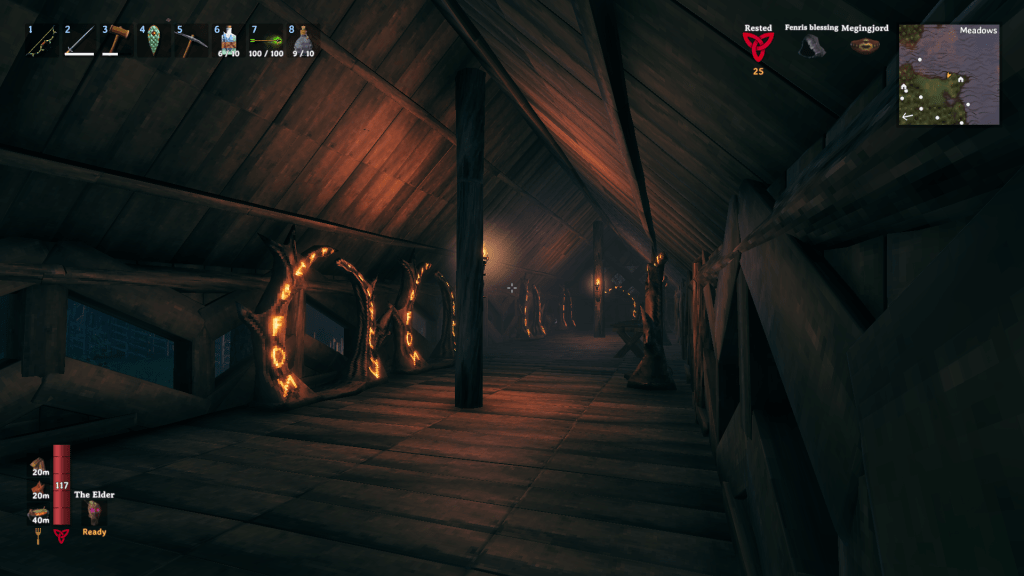 I’ve played Valheim several times, including a few times multiplayer. I didn’t finish every playthough, but most of them reached the end (the end being whatever was in the game at that time). I’ve found that my willingness to reach the end is largely impacted by how much I’m satisfied with my build projects. My abandoned runs usually end with me being unhappy with my house and losing motivation to fix it. My latest playthrough takes this into consideration, and I’ve focused more on the build and being stocked on materials than usual.