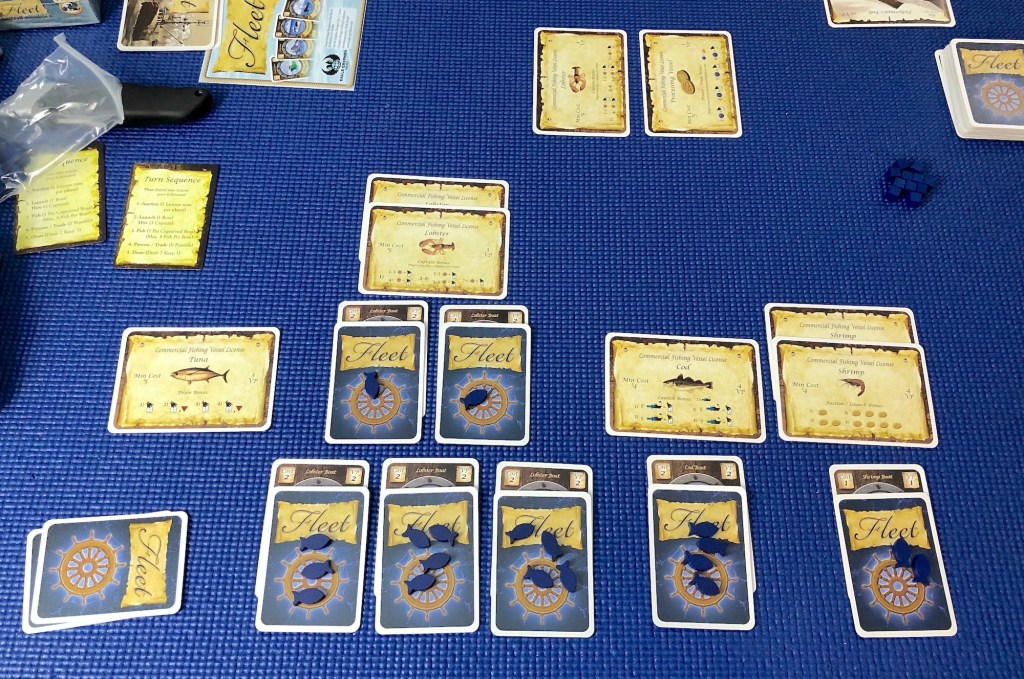 It’s very much about the auctions. You need a license in order to catch fish (or even launch a boat), but the licenses also come with special bonuses. Without them, you’re heavily restricted in different aspects from card draws, money (which comes from cards in-hand), launching boats, captains. But they can also build into fun combos that get more powerful the more of the same license you own.