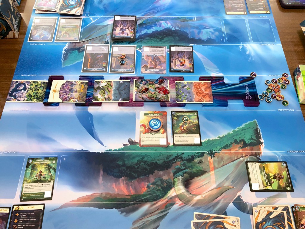 It was nice getting to explore some of the more specific strategies of the factions and not just a tiny sample of what the faction can do (with lots of vanilla cards). The anchor/boost dancing Muna can do is pretty fun.