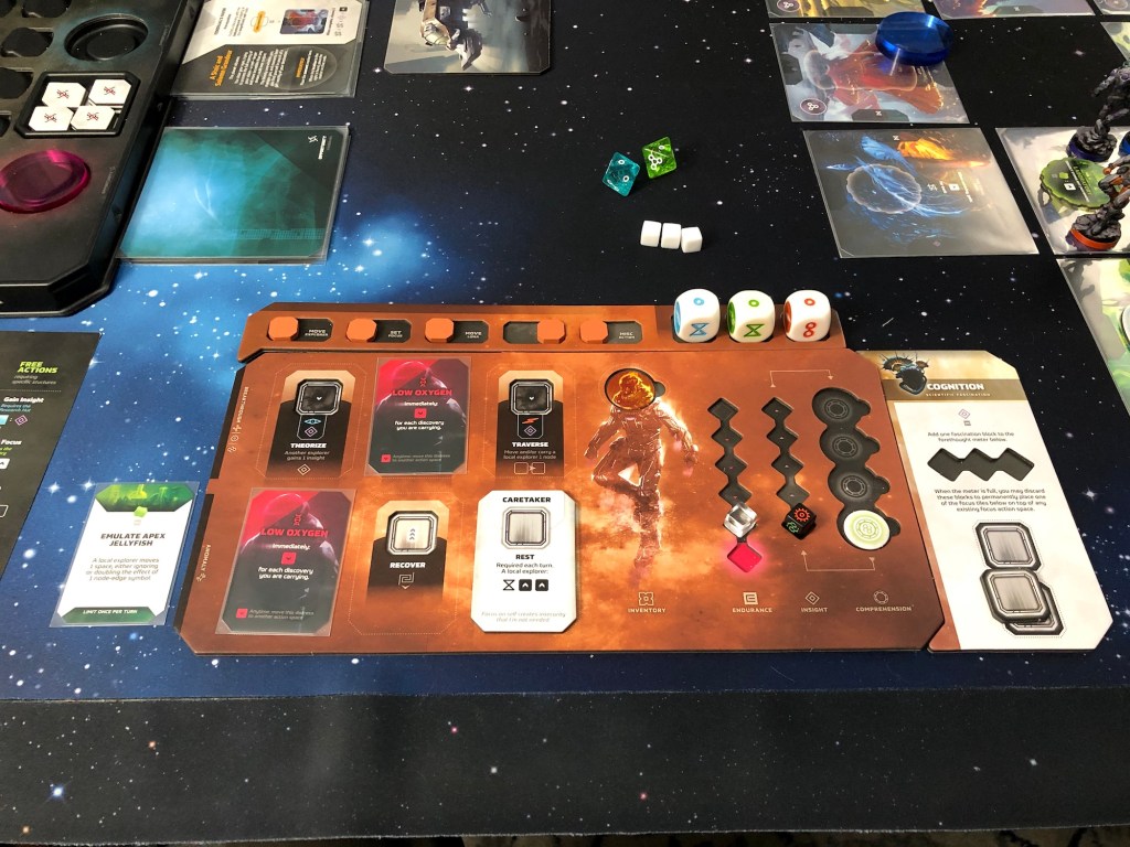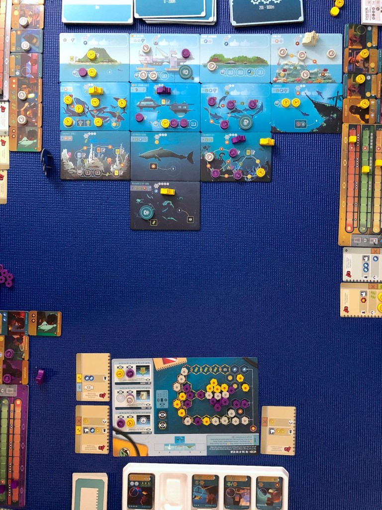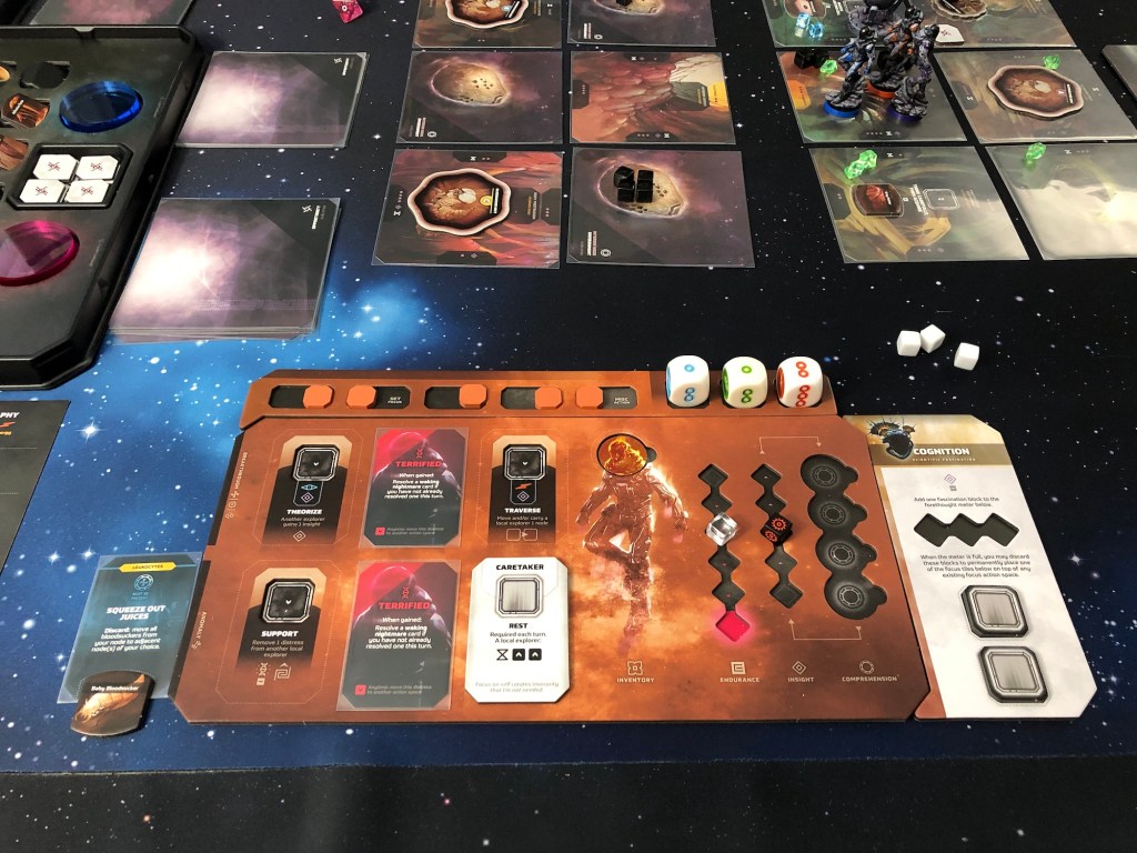 Second planet was the ocean world. It’s not bad, but felt a little more basic than most of the others, especially since you’re constantly discarding your stuff for favor instead of using them. Technically, we should have lost by the end since there was a surprise final action on the last card, but we had calculated everything and didn’t know to try and save an action.