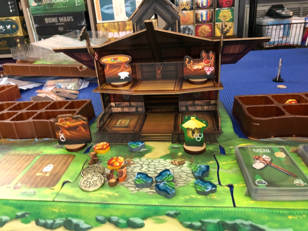 The first impressions all around were positive, though my friend probably enjoyed it the least. But even at 3-player, it plays pretty quick. We also used the optional rule that resources have to be dropped off at the house.
