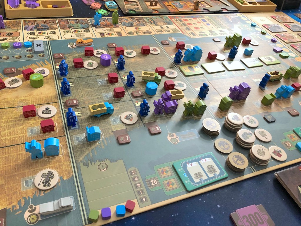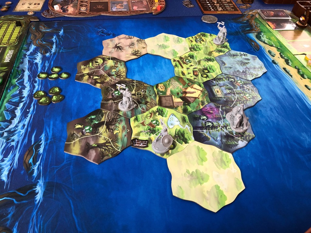 We also had some rough luck with resource rolls. We had maybe three or so rolls all game that weren’t 1s, which made collecting slow. We also had a really bad favor card come up that was going to cost us 3 time when we were already low on time, and some of the opportunities popped up in far-away spots that wasn’t worth trying to get to.