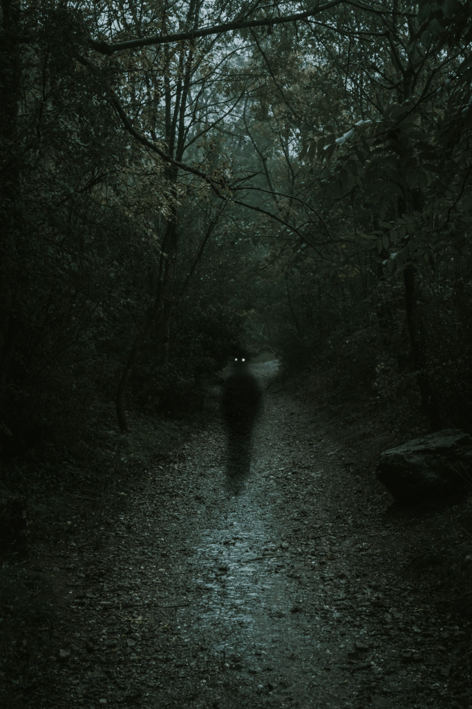 A light flickers among the trees. Car headlights? But you’re not yet by the road, and there’s no sound of engines. Your heart pounds and now your head does as well. You double over in pain from the headache. The trail seems to spin, and you lean against a tree, waiting for it to pass. But icy hands wrap around your neck. You weakly try to break free but are held by an ever-tightening grip. Before consciousness drifts away, you turn your head to see your attacker. All you can observe in your last moments are glowing eyes.